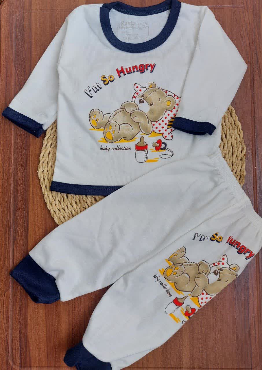 بلوز و شلوار نوزادی نخ پنبه طرح خرس گرسنه سایز 1و2و3