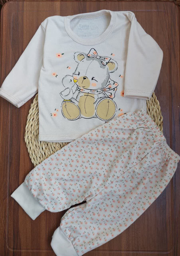 بلوز و شلوار نوزادی نخ پنبه طرح خرس و اردک سایز 1و2و3