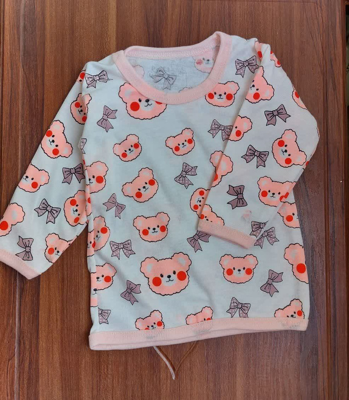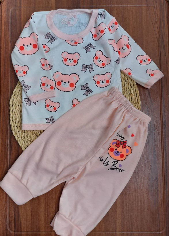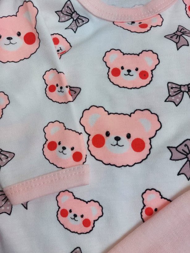 بلوز و شلوار نوزادی نخ پنبه طرح خرس پاپیون صورتی سایز 1و2و3